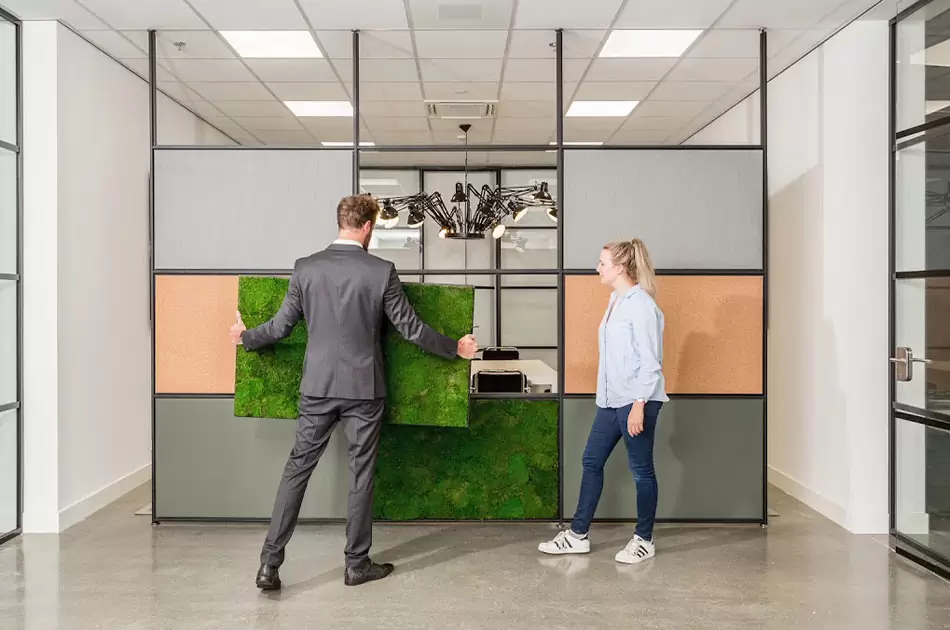 • Raumteilung: Systemtrennwände ermöglichen eine flexible und modulare Raumteilung. Dadurch können Büroräume an die individuellen Bedürfnisse und Anforderungen der Mitarbeiter angepasst werden.