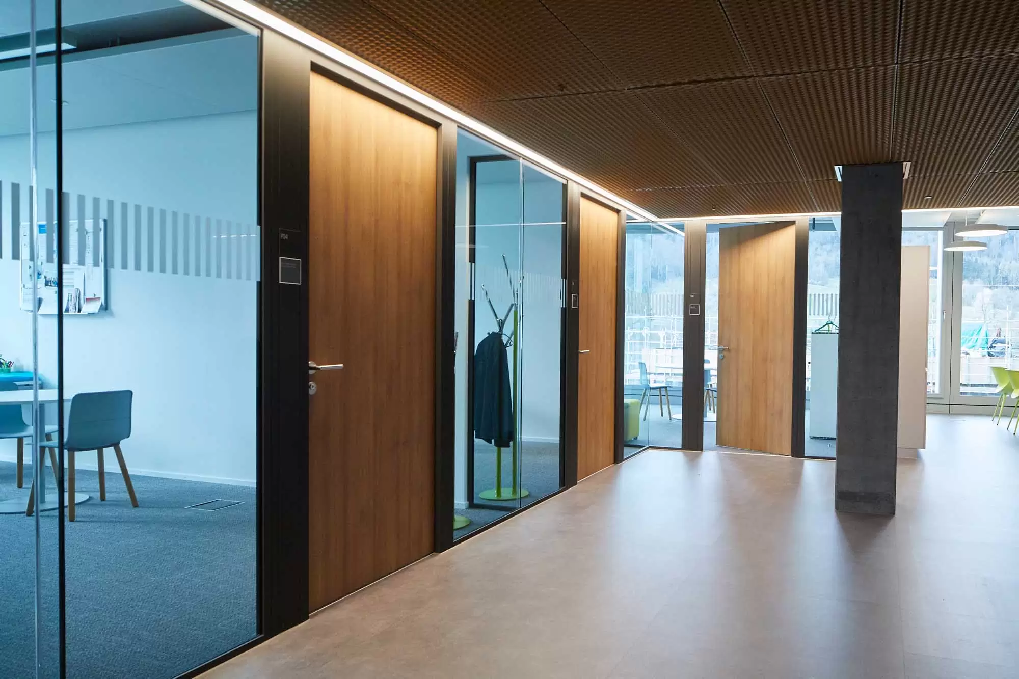 • Schallisolierung: Systemtrennwände tragen dazu bei, Lärm und Geräusche im Büro zu reduzieren und somit eine ruhige und produktive Arbeitsumgebung zu schaffen.